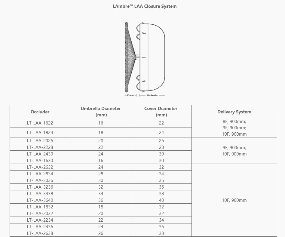 "Lifetech Scientific"LAmbre Left Atrial Appendage (LAA)Closure Delivery System